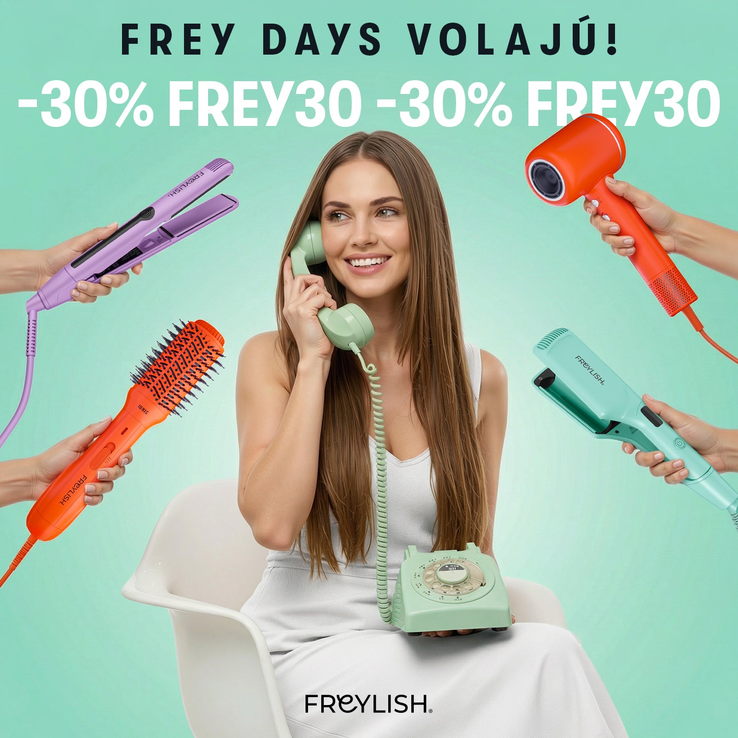 Silný výkon, šetrná starostlivosť. Freylish PRO Fén ti vlasy vysuší rýchlejšie a zanechá ich hladké a lesklé.